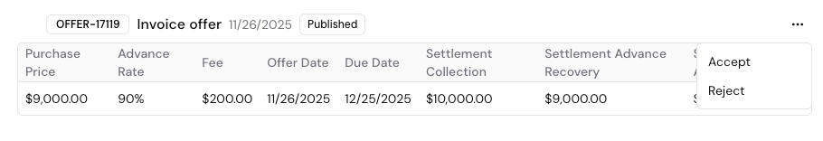 Once you accept the offer, and the invoice and valid Proof of Acceptance have been provided, Klear will initiate the transfer of funds into your Klear Account (your Fifth Third account).
