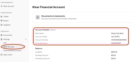 Before you can send a test payment, your Klear account must be funded.