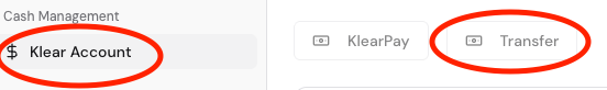 ● Go to Cash Management > Klear Account > Transfer